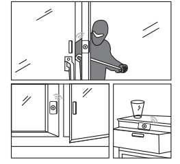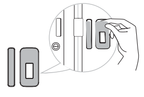 RetirA la película engomada y pegue el equipo en el área requerida. El sensor debe instalarse en un área fija como el marco de la puerta, el imán se puede instalar en un área activa como el tablón de la puerta; esta imagen es solo de referencia.